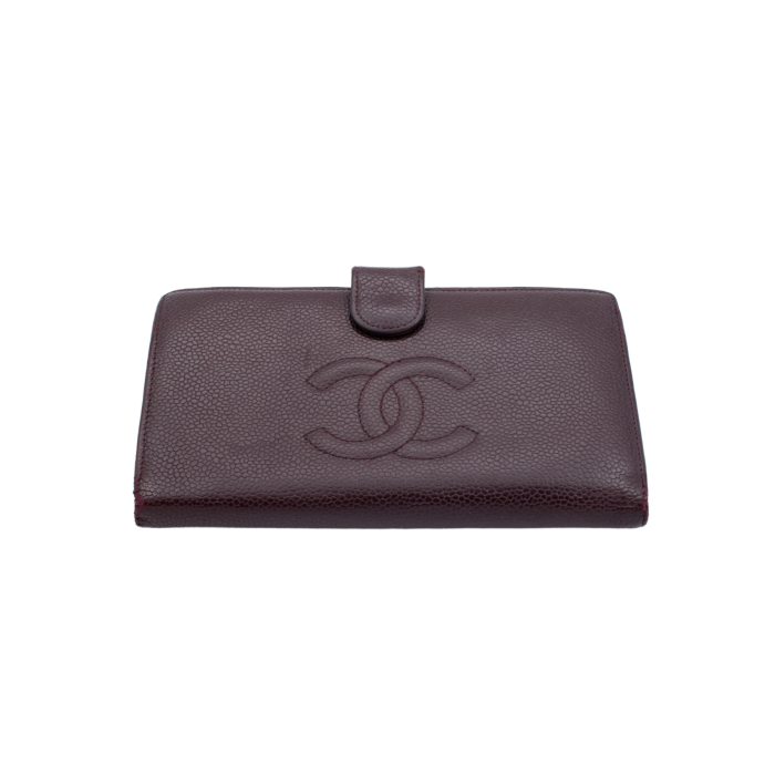 The CHANEL Caviar Timeless CC French Wallet in Burgundy—a classic piece that embodies the elegance and craftsmanship synonymous with the House of Chanel.