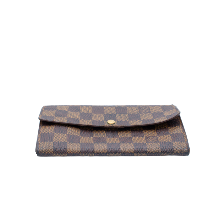 The Louis Vuitton Sarah Wallet is a long-time house favorite, known for its clean lines, secure envelope-style closure, and timeless appeal. Crafted from the brand’s durable Damier Ebene coated canvas, this wallet combines Parisian elegance with practical interior storage — ideal for the modern woman on the go.